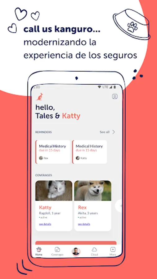 ● Kanguro's cloud : keep all your vet bills, medical history, claims history in one place.