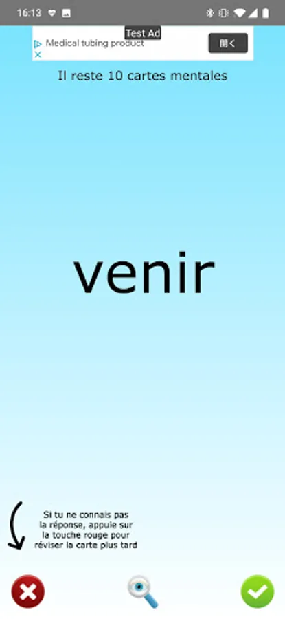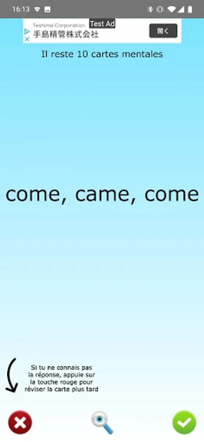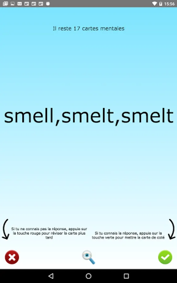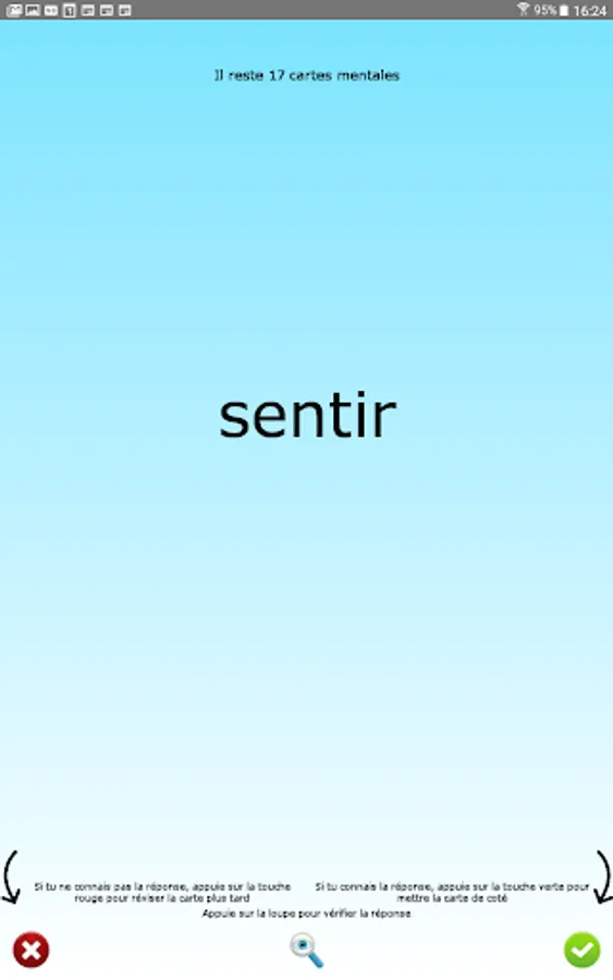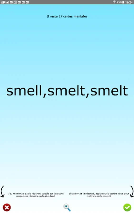 • If you know the translation you drag the verb to the right so as not to see it again passing on the screen