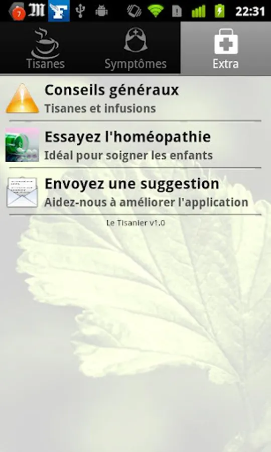 The application lists the plants and roots most commonly used to make herbal teas and herbal teas, remedies for symptoms and tips for successful herbal teas.