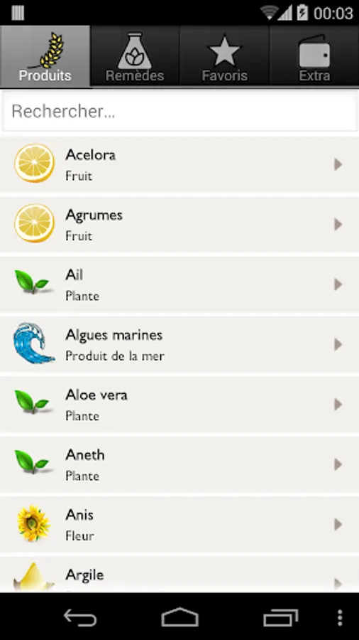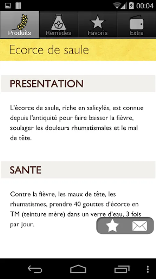 More than 60 sheets of products: Citrus fruits, garlic, seaweed, dill, anise, clay, carrot, coal, cumin, mint, propolis, sage, vinegar. ... are some examples of products you can find in the application of natural products