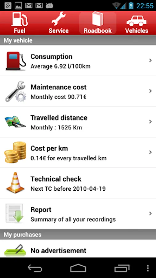 There you have never come to say "When I do my review? My next technical inspection is coming soon? What is the use of my bike? "If the answer is yes, this App is for you! In fact you will be able to track the maintenance of your vehicles: technical inspection, drain, tire change, and follow the daily management of consumption ... However, if the answer is no, I suggest you start doing today. In fact, if you notice unusual fuel consumption of your vehicle, it is likely that your engine is not running optimally (cleaning the air filter, or changing spark plugs is required)