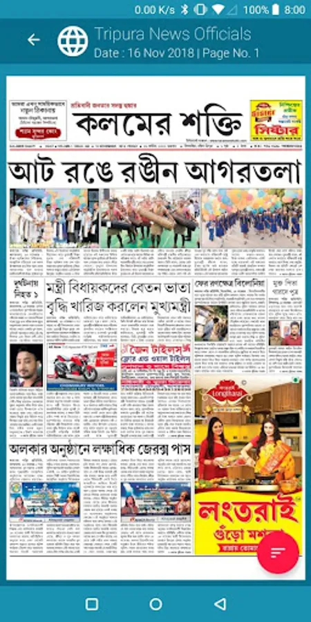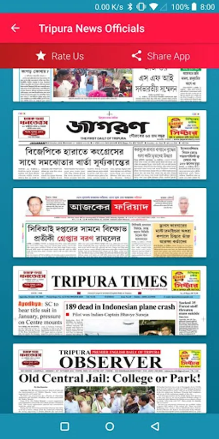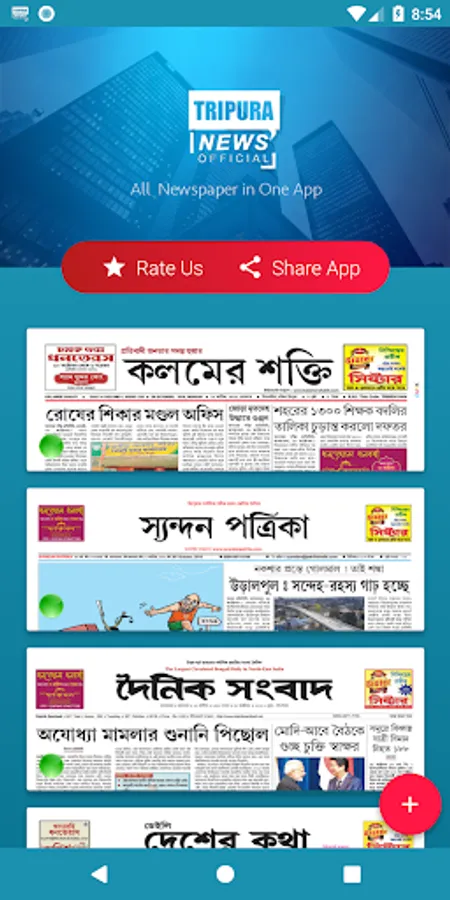 Tripura's 1st Android native App for Newspapers. Included Newspapers are Dainik Sambad, Syandan Patrika, Daily Desher Katha, Tripura Times, Tripura Observer, Ajker Fariad, Jagaran Tripura, Tripura Khabar, Pratyasha Tripura.
