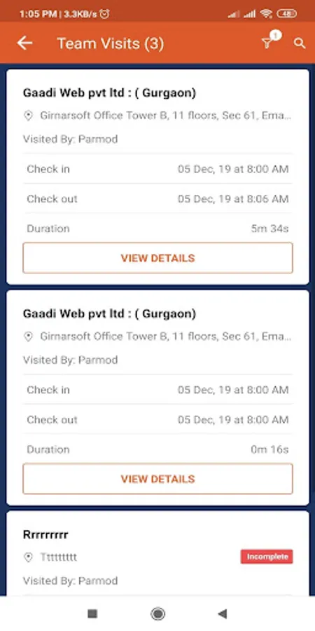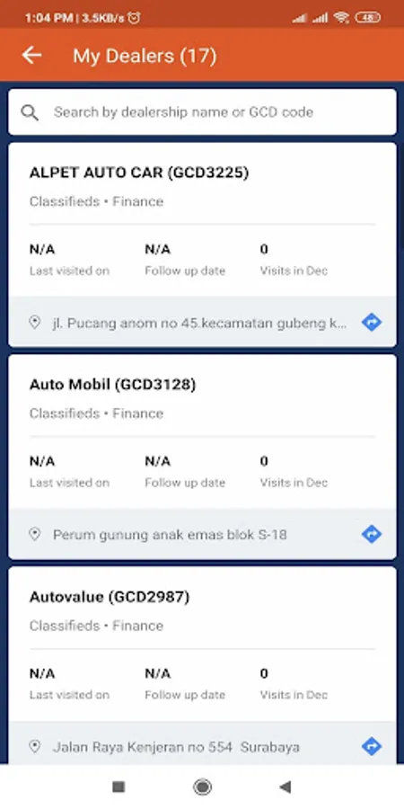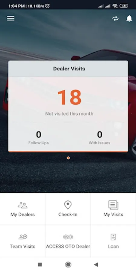 The application facilitates the users to check in at assigned dealership, office, banks, customer visits and visits to new dealerships. Other than allowing the user to check at specific locations the app also facilitates the following-