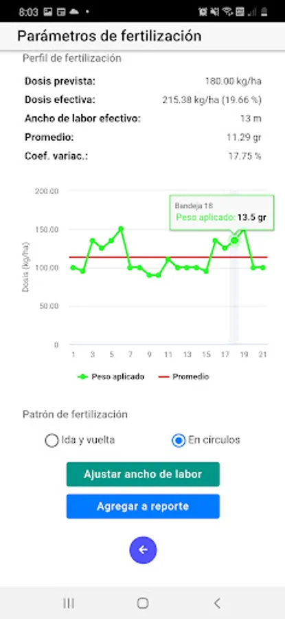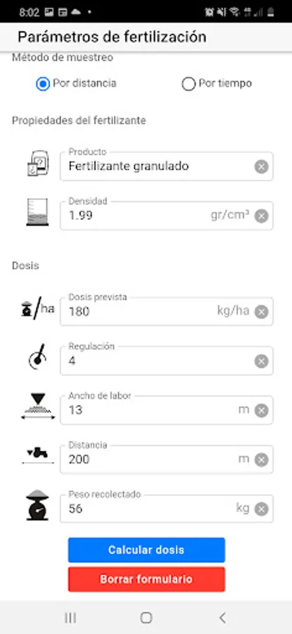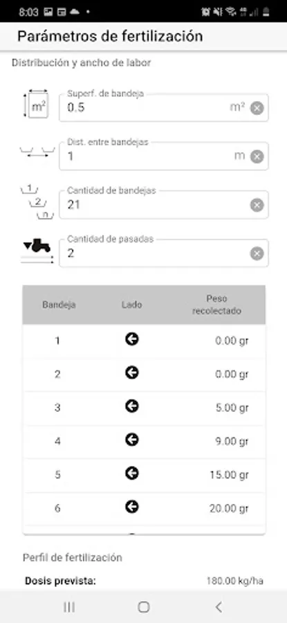Fertilizer Campero in an App to regulate distributors of any type of product by projection such as fertilizers, fertilizers or amendments. Among its main utilities is a dose calculator and the necessary calculation tools to determine the working width of the equipment and the degree of uniformity of that distribution.