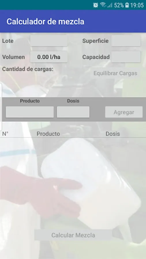 It also has a mixer calculator that allows to determine exactly the amount of product needed in each load to respect the prescribed dose. It also performs the calculations of the total inputs and the amount of loads depending on the surface of the lot and the volume sprayed per hectare.