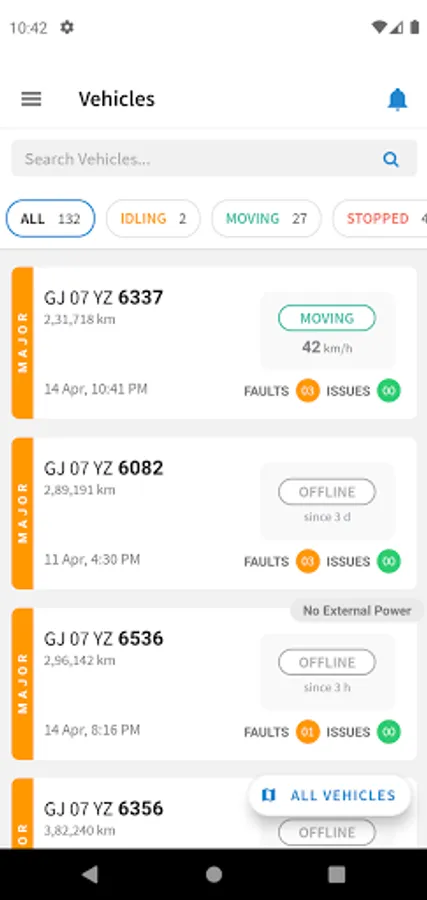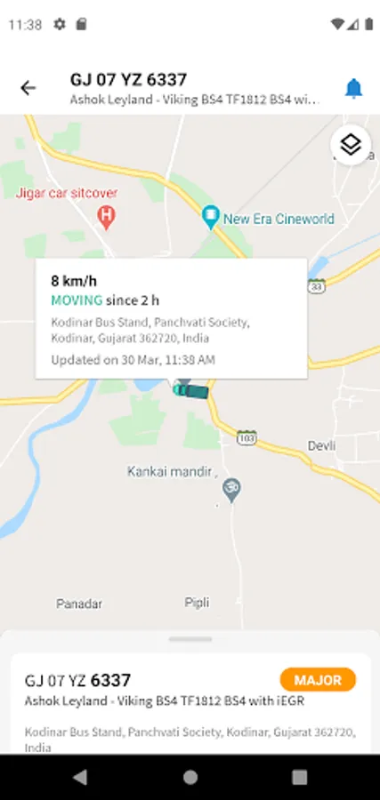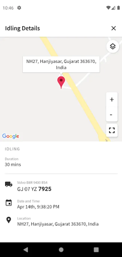 - Map View with Live Location along with Vehicle Speed and positioning details
