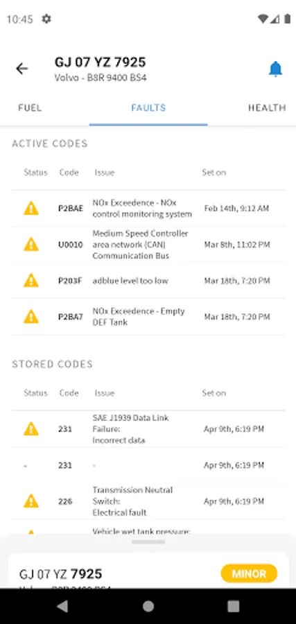 - Current Vehicle Health Status