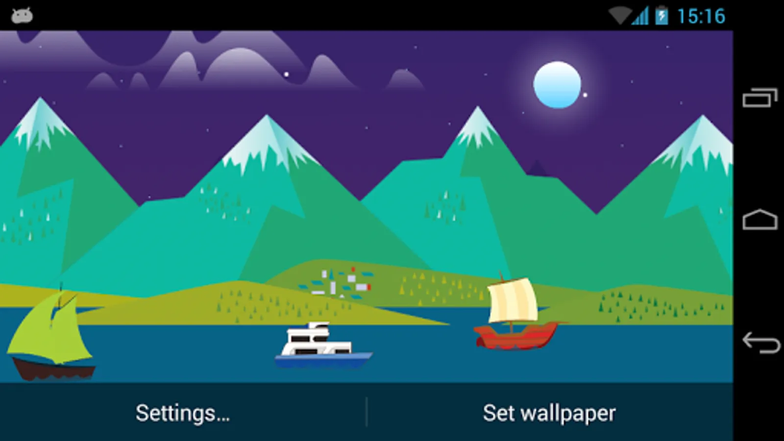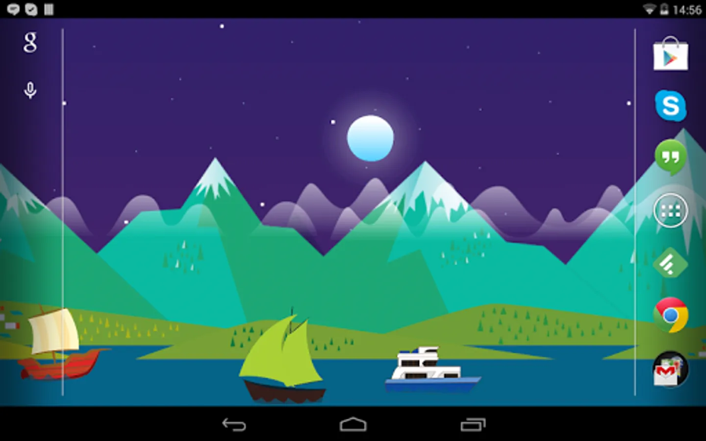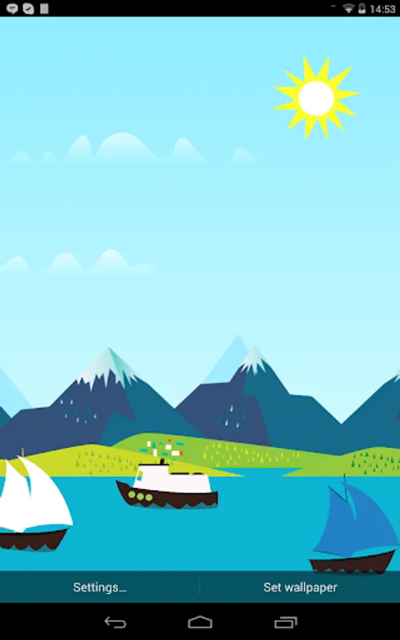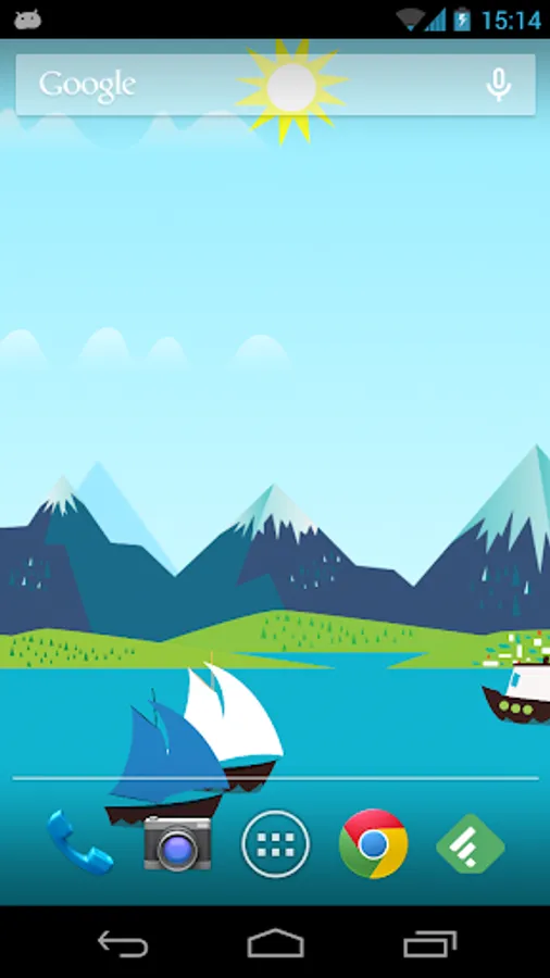A Live Wallpaper inspired by the Google Now Mountains theme, that features an upriver journey with boats traveling in your screen and along the rocky mountains. The wallpaper makes use of the 3D Parallax effect using the gyroscope.