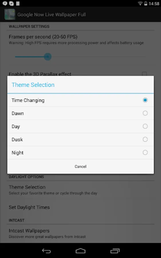 With the full version you can change theme between dawn, day, dusk, and night, or let it change by itself depending on the time.