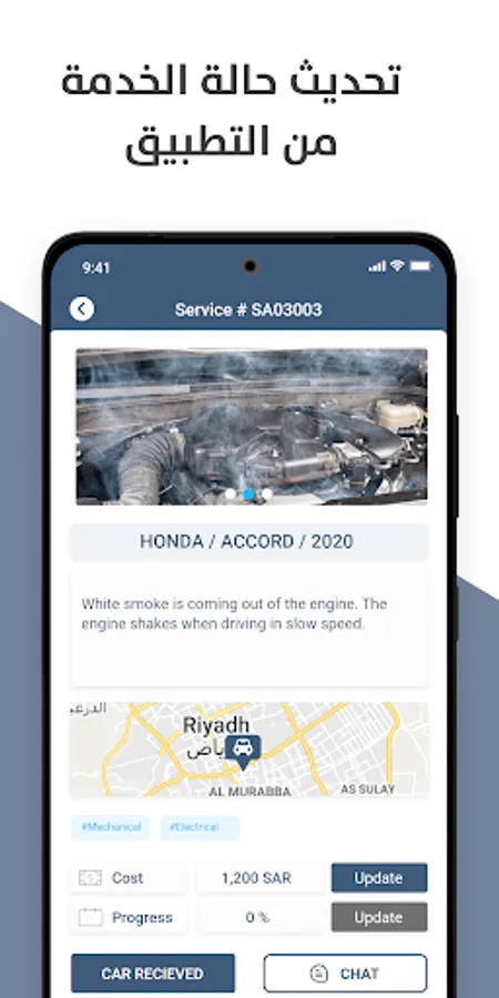 • تواصل مع عملائك مباشرةً: تتبّع التغييرات في موقع الصيانة، وتحديثات الوقت المقدّر للانتهاء من الإصلاح، وإجراءات الإلغاء، حيث يتم التواصل مع العملاء مباشرةً من خلال التطبيق، لذلك لن تضطر إلى إضاعة الوقت في الاتصال بنا أو بالعميل كلما كان هناك تحديث مهم أثناء طلبات الإصلاح النشطة.
