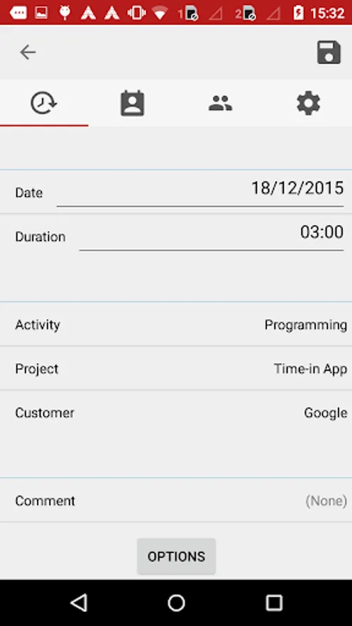 With Intec's Time-in app you can capture your working hours and furthermore access the contact details of your customers and employees.