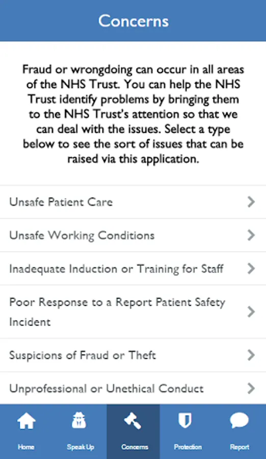 This app allows you to raise a concern confidentially and our Freedom to speak up Guardian, Heather Bruce, will look into the matter and follow it up. The Trust wants everyone who works within the Trust to be confident that if they raise a concern about a potential past, present or future wrongdoing then you will be listened to.