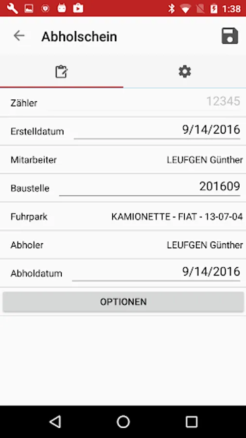 Intec's Leufgen app allows you to capture a removal order, as well as access to the articles, the fleet, as well as the employees.