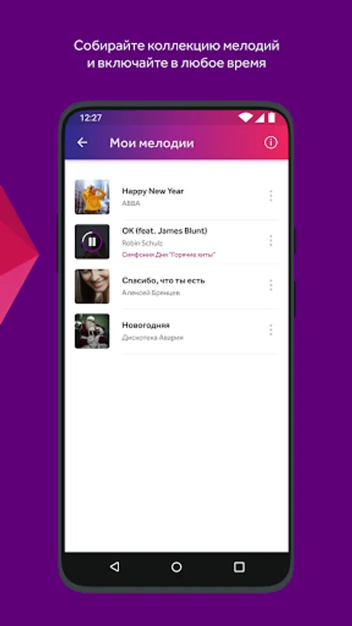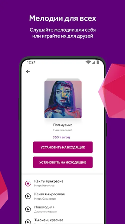 When ordering melodies from the application, the Simfonia and / or My Simfonia service is automatically connected (if it has not been connected before). After installing a melody, the beeps in your phone change to a new melody that will be heard by all subscribers calling you.