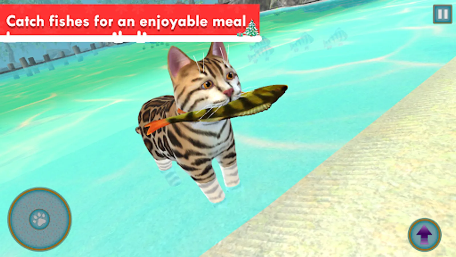 Variety of levels are set to get you more satisfaction while playing like a real cat in a virtual gameplay. Make new friends and grow your family of cute cats. Fight with wild animals including other cats for a long-term survival. In the clear water jump, swim and take a bath. Cat loves to eat Fish. So, for a delicious delight, join your kitty friend and catch fishes.
