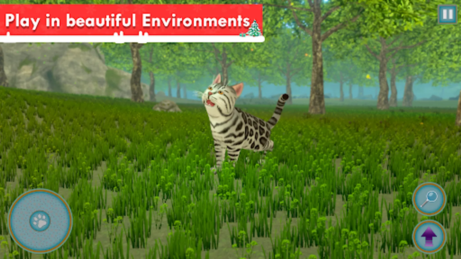 Choose your favorite cat from different breed of kitties for cat simulator in jungle adventure. There is an amazing Terrain for cute cats to play and explore. As a kitty, you have exciting episodes of continuous challenges which you must face with strength and wisdom. Play like the most fascinating and popular pet in a jungle environment of cat simulator. Spend your time in grooming and finding friends to grow your cat family. Show your predator and prey skills in a natural cat life simulation. Hide high in trees or hills to watch for prey. And as prey, escapes to high places where large predators cannot follow. Unlike domestic cats who live in a human house, you can also satisfy your love of high places. But at first you must find approved places for climbing, jumping, escaping, resting, and surveying the jungle environment. Expand your energy and use your mind in tricky situations to live happy and healthy.