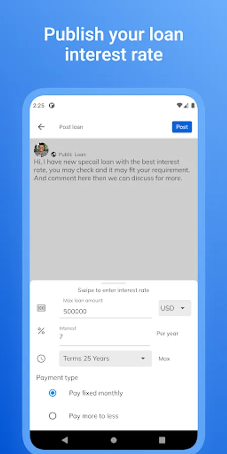 Users can post their loan interest rate on Peatel for the Bank, Microfinance and Business. Their post will be published to all Peatel users. Peatel also helps users to find out the best loan interest rate that has been posted. Peatel feature does not support applying for a loan. Users can manage their own communication by using the comment feature.