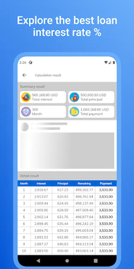 Users can calculate loan interest directly on published interest rates and they will see the common result of loan repayment as monthly. The result is not 100% present as the same as the owner organization but it is almostly similar to the actual calculation of each organization. To ensure the exact loan repayment calculation, users can ask the owner to clarify the calculation result.