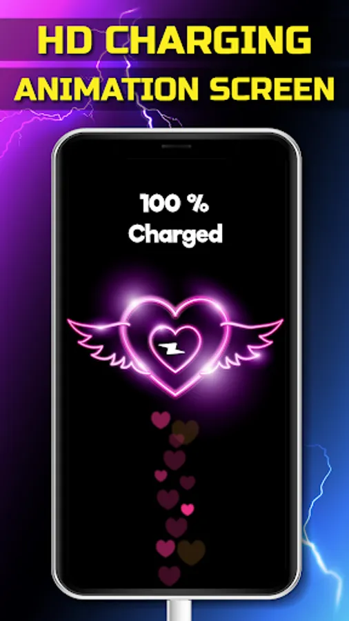 It is not necessary to manually launch the app, the battery animation will appear instantly on the phone screen as soon as you plug in the power. A battery charging animation theme gives users the option to create stunning and unique charging shows - charging photos with no effort.