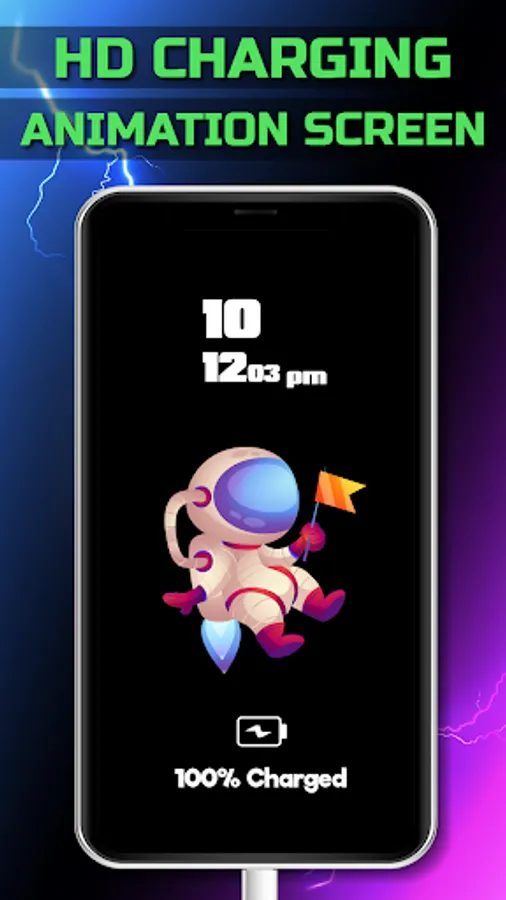 It is possible to run the animation in the background as part of the charging animation theme. The dynamic animation does not require you to grant any additional permissions, but rather provides a stunning visual experience. Cool Animation App prevents you from having to keep checking the battery status too frequently.