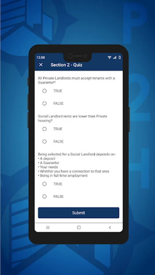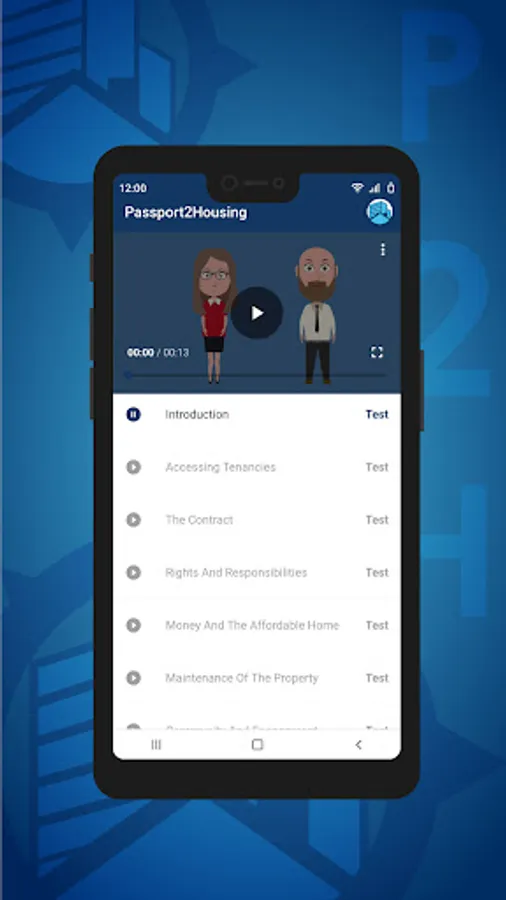 Passport2Housing is a demonstration app to show what this service can do, we have 6 training modules that introduce the responsibilities on taking a tenancy for anyone wishing to apply for social housing. Each scripted module has an animated lessons with some true/false questions at the end. Only on successful completion of the 6 modules are the prospective tenants eligible to apply for housing.