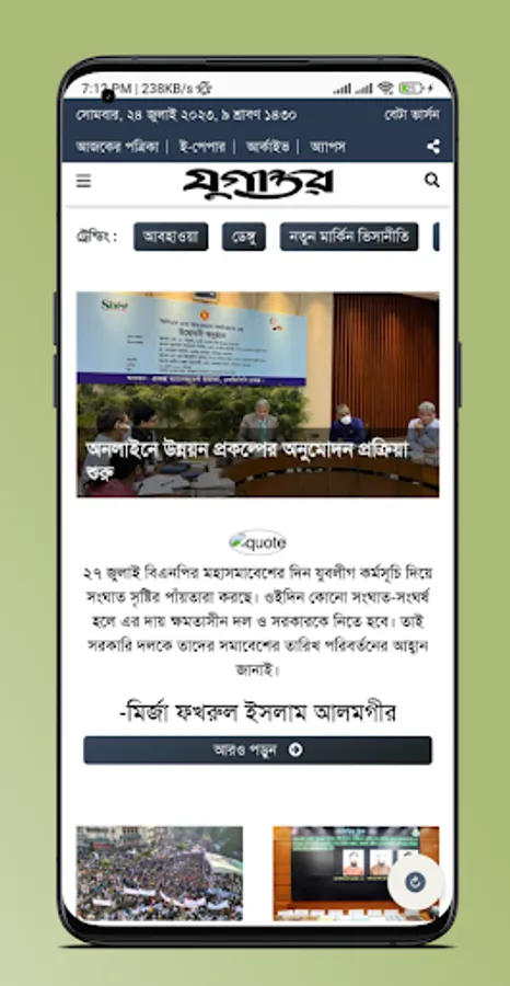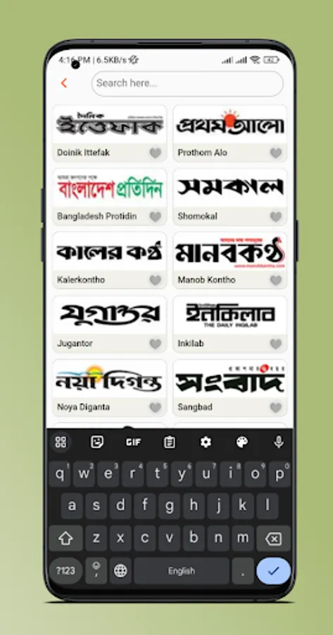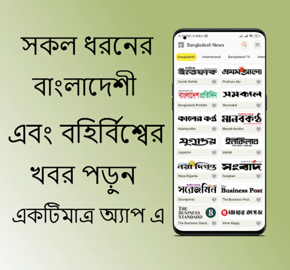It contains All of the popular Bangladeshi and International news papers using this application. They can chose their favourite news papers and it will store in their favourite list.
