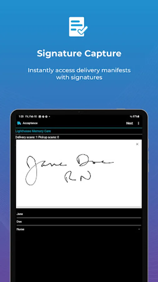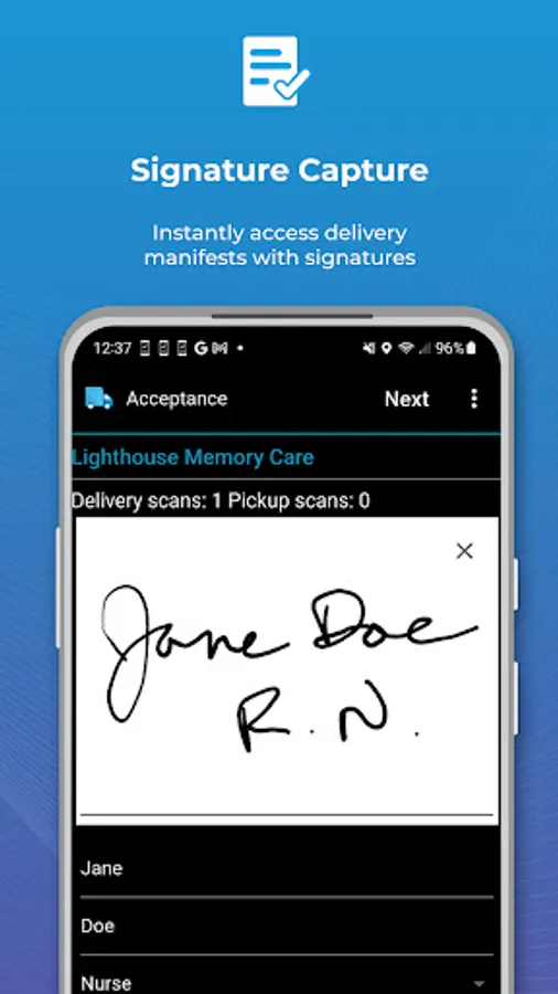 The DeliveryTrack pharmacy delivery app helps manage your pharmacy’s delivery process. Manage your pharmacy delivery logistics from item validation and route optimization to signature capture, providing audit compliance and peace of mind.