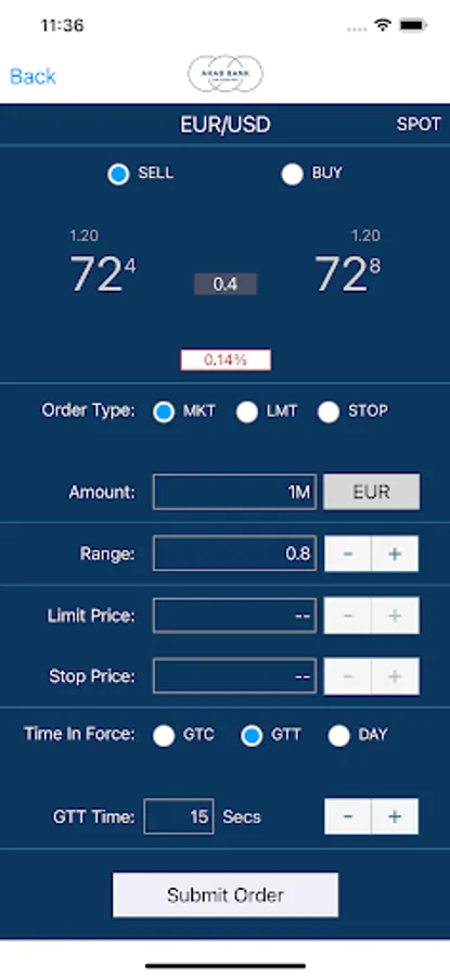 •Market: amount, range, time in force, GTT time