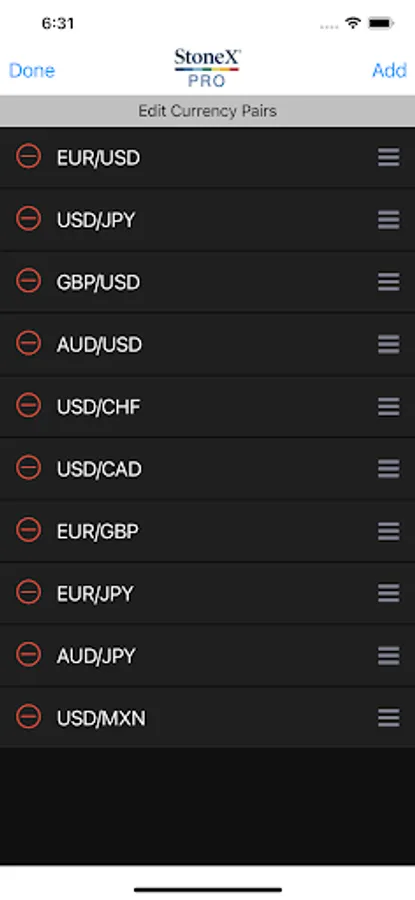 The layout is very intuitive but can be customized even further. User can add and delete currency pairs. They can also be re-arranged in the order the user prefers them to be.