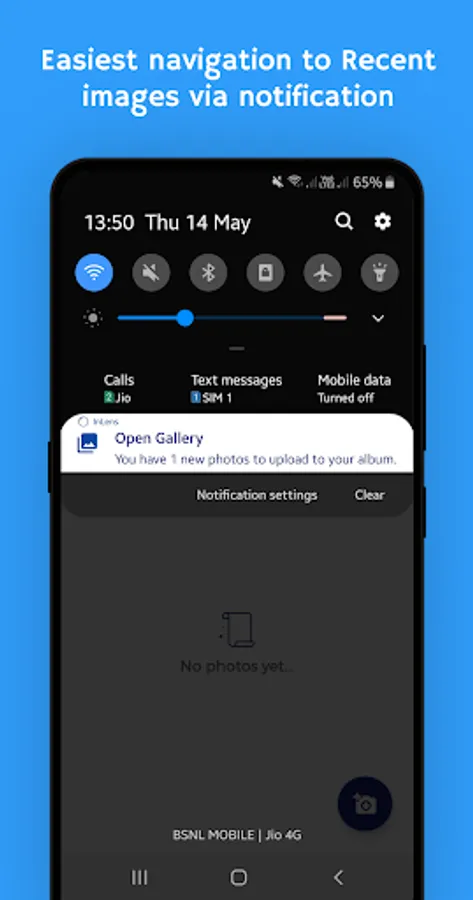 4. Tap on the Gallery Notification to view the captured images , then select and upload it to your album