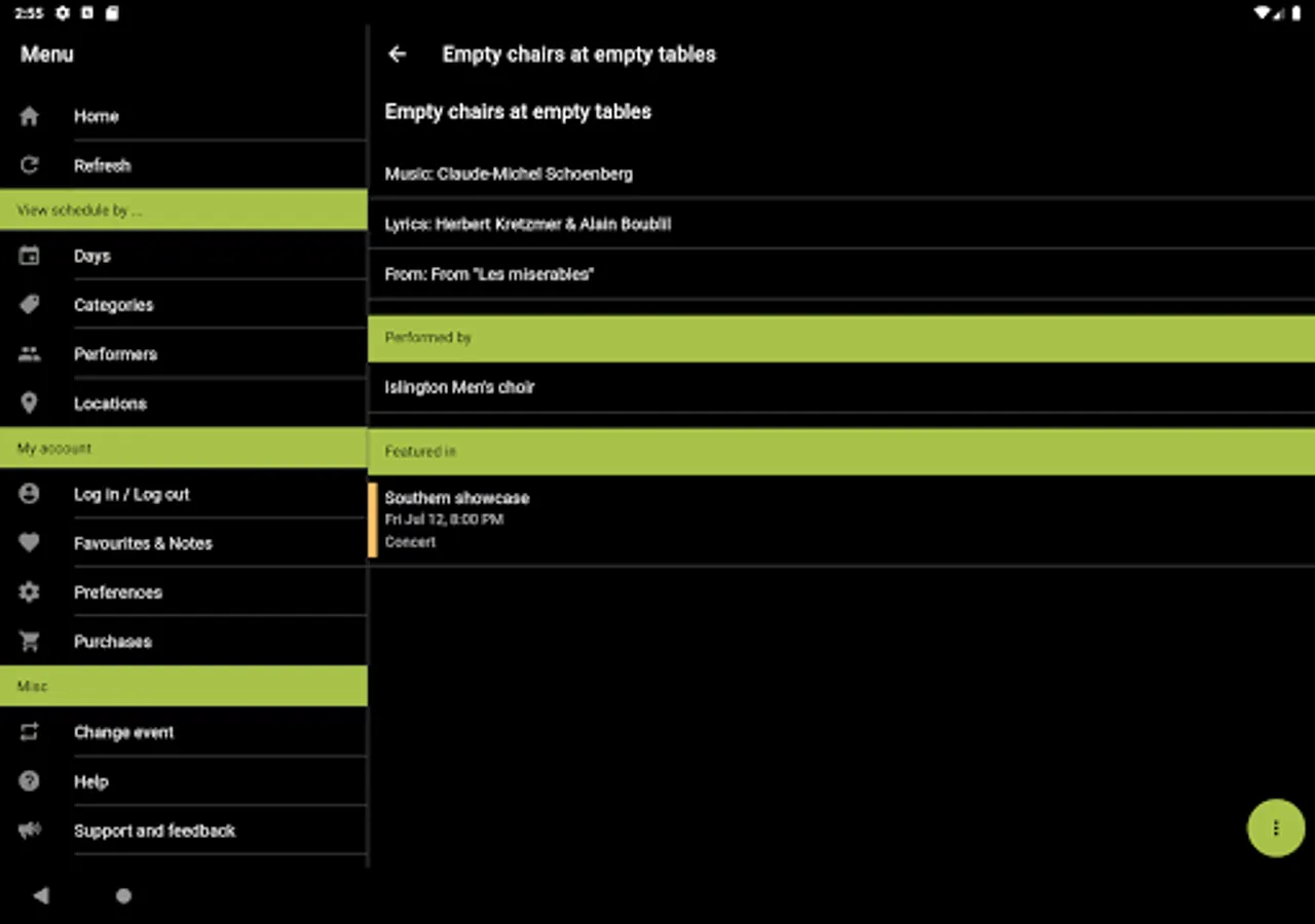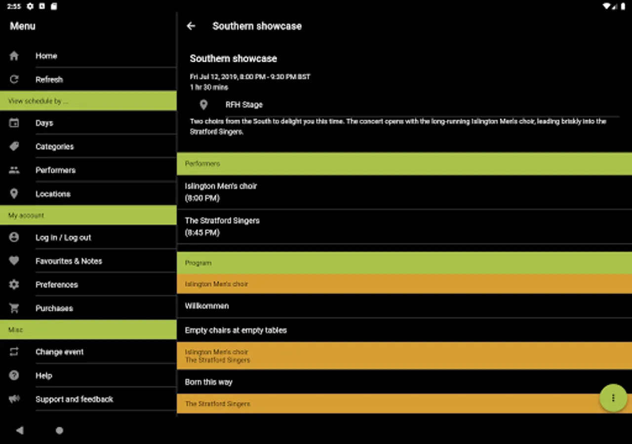 - make your own notes about events, performers and songs (which you can print later from the Integra web site)
