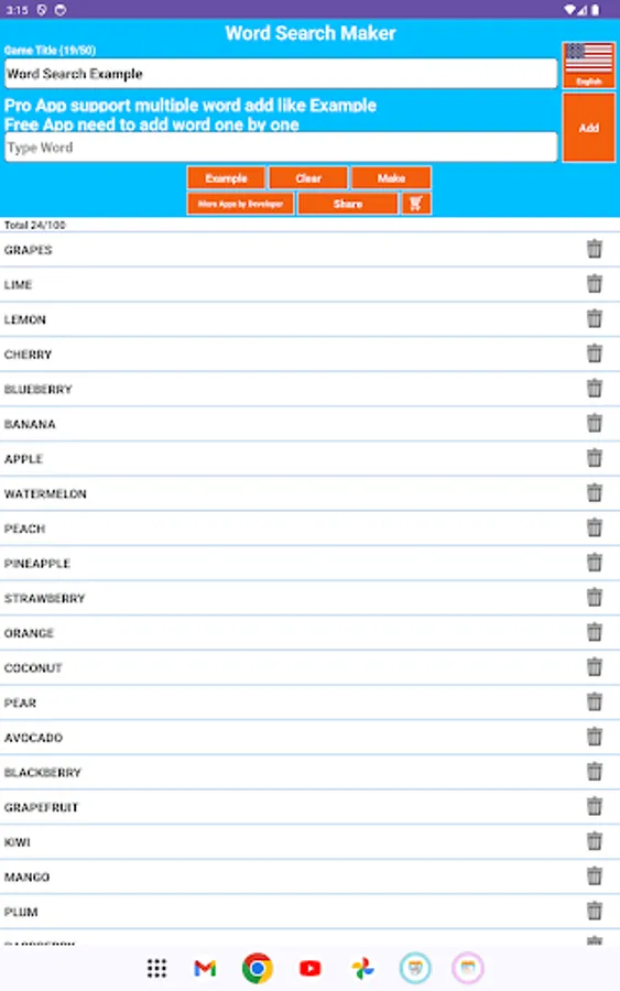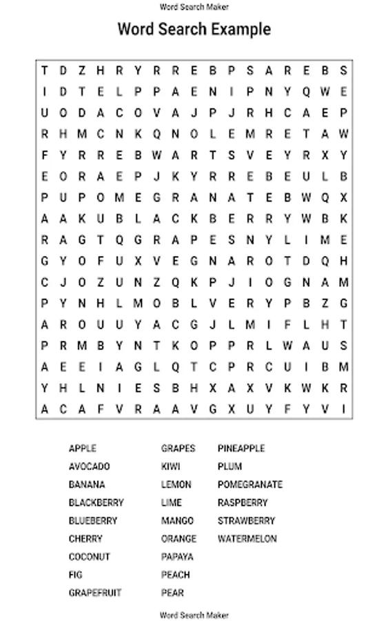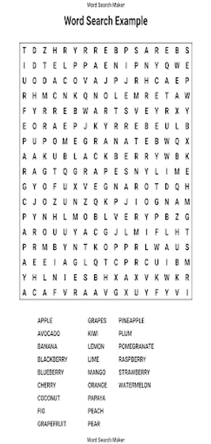 Make Word Search Puzzle with Custom Word List for maximum 40x40 size.