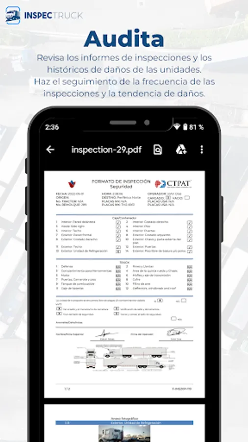 If you want to go from manual to digital when carrying out inspections of your trucks, and optimize time and costs. Then you should use the Inspectruck trucking unit inspection and damage recording software.