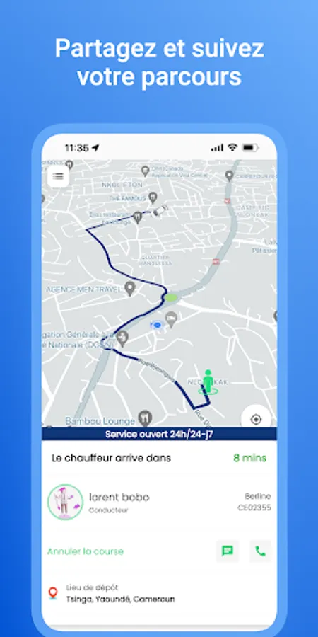 4. Visualisez la localisation de votre chauffeur en temps réel.
