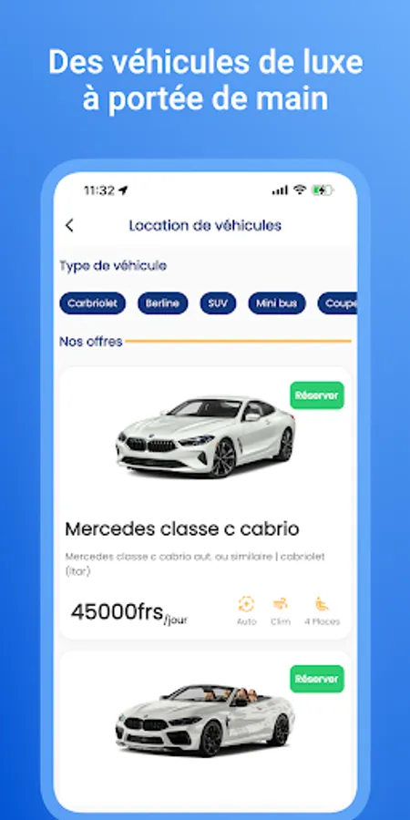 ONGO vous propose également un service de location de voitures avec ou sans chauffeur. Il existe un large choix de voitures convenant à tous budgets.
