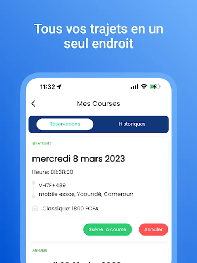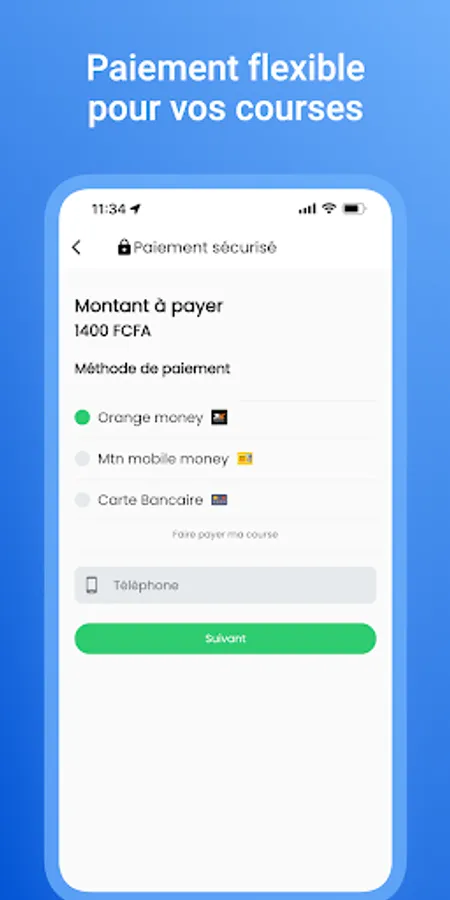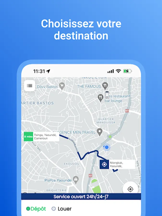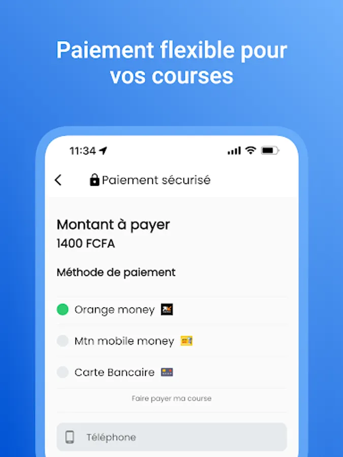 Avec nous, vous pouvez rejoindre votre destination en un clic. Ouvrez l’application et saisissez votre destination. Nous vous mettrons en relation avec un chauffeur à proximité qui vous y conduira en toute sécurité. Afin de garantir une transaction sécurisée, les paiements s’effectuent en Mobile Money.