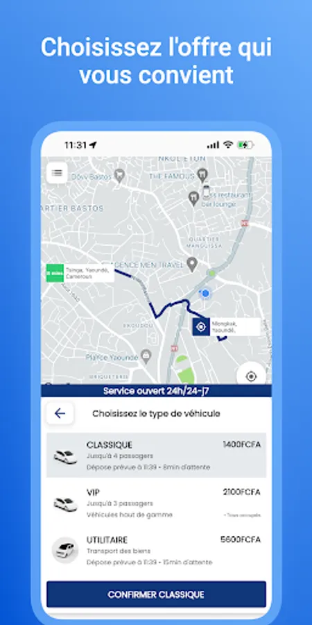 ONGO met à disposition des chauffeurs disponibles 24h/24 et 7j/7, des prix indiqués dès la commande, et des déplacements en toute sécurité.