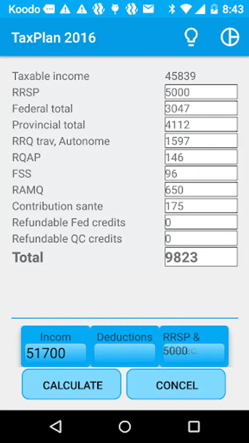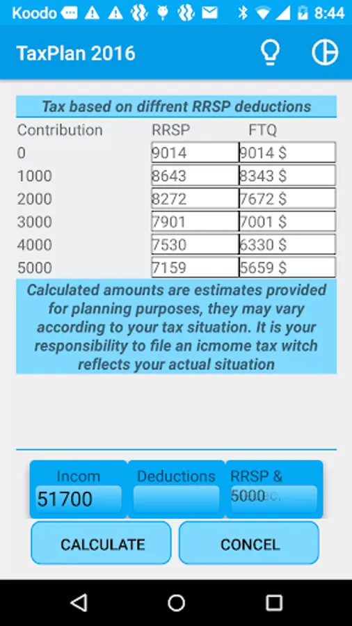 This application allows you to estimate the taxes to be paid according to the regular RRSP and FTQ contributions in order to establish the optimal contribution.