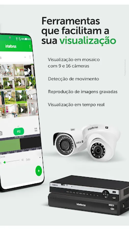 Compatible with Intelbras brand DVRs and IP cameras. Check the compatibility of features on your device. Features and functionality may vary or have limitations.