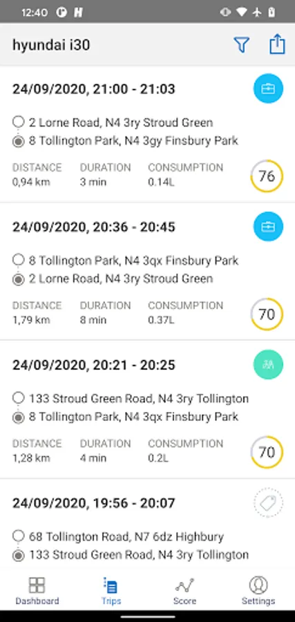 • Keeping track of all your journeys so you can monitor your car use and export easily your business trips.