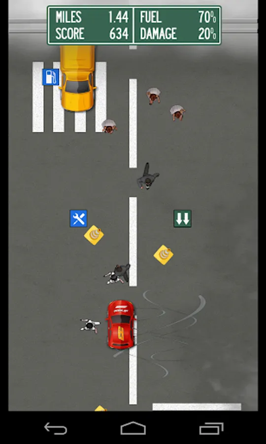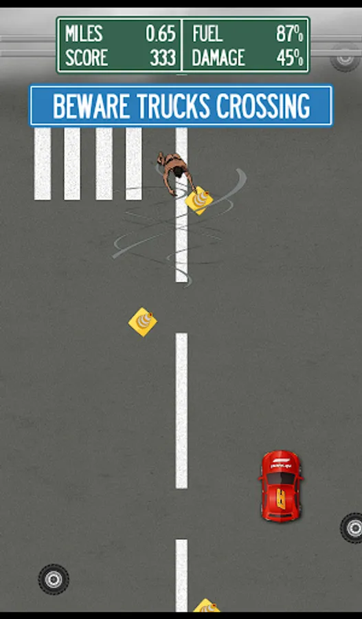 Pedestrians do not necessarily obey traffic rules. You can find them all over the road. Hitting pedestrians will earn you a warning. More than three warnings and the game is over.