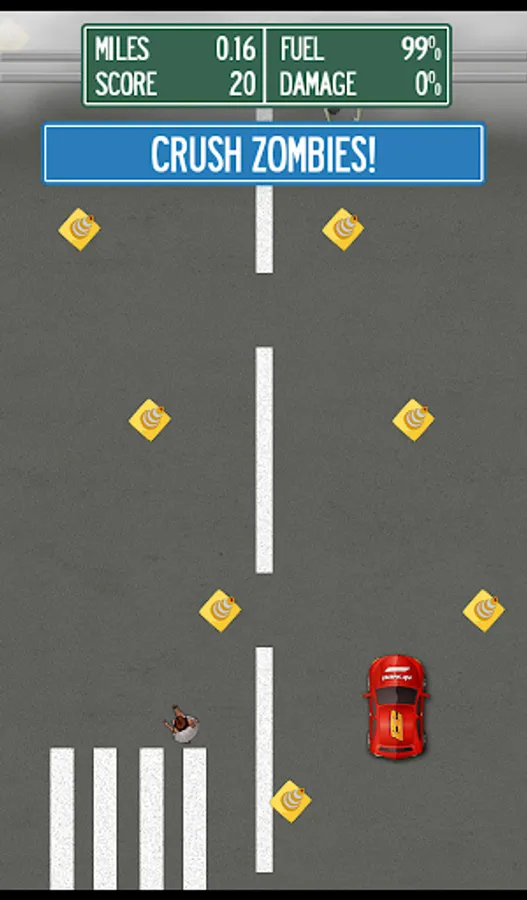 Avoid pedestrians but crush as many zombies as you can. Do not let them re-conquer the world.