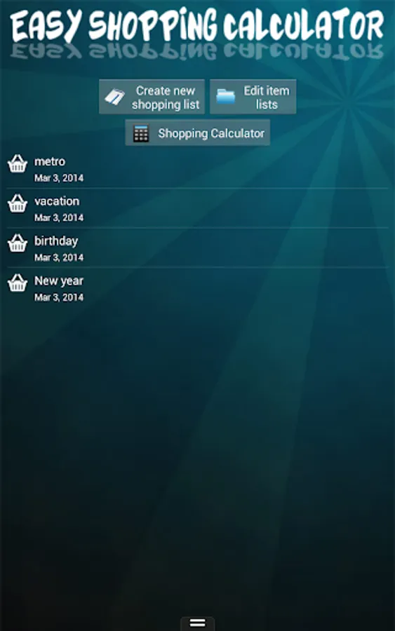 - Intuitive user interface, very simple and fast entering of your shopping items with lists created before