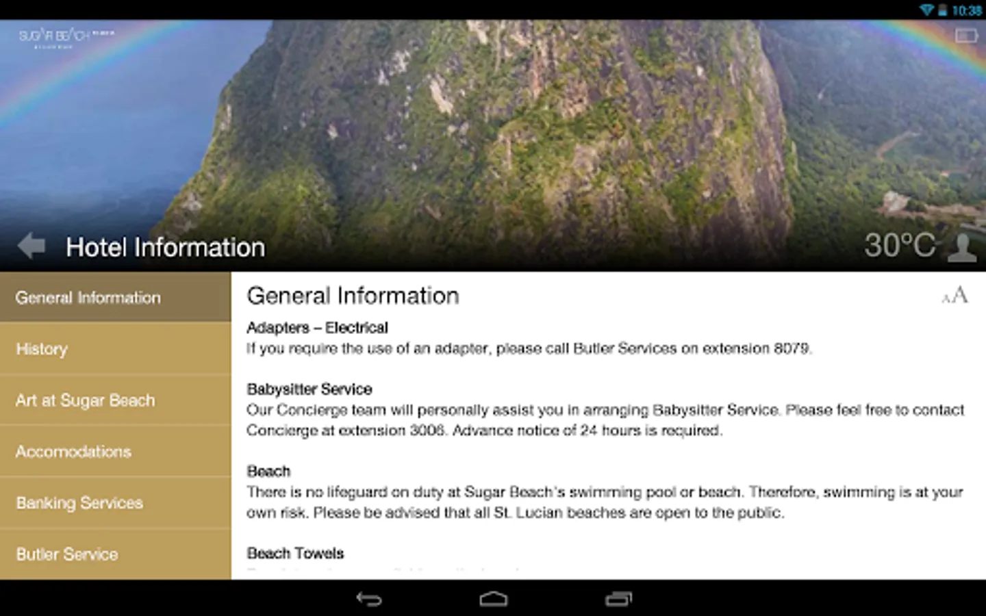 The Viceroy Sugar Beach application is designed to help you make the most of your stay with up to-the minute information such as: