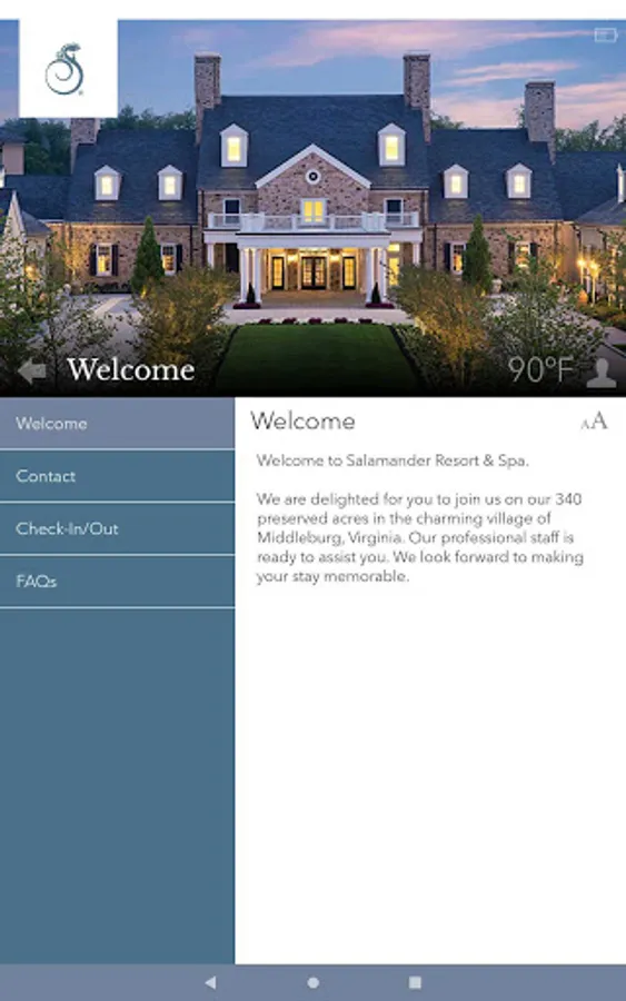 Set on 340 acres nestled into the foothills of the Blue Ridge Mountains amid Virginia's famed horse and wine country, Salamander Resort & Spa is an opulent and homelike destination. In keeping with the country estate design, all 168 rooms and suites are comfortably spacious and include an outdoor patio or balcony. The plush bedding is accented by the linens and throws that have been personally designed by Sheila C. Johnson, incorporating hints of the seasons and equestrian life.
