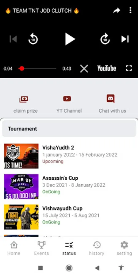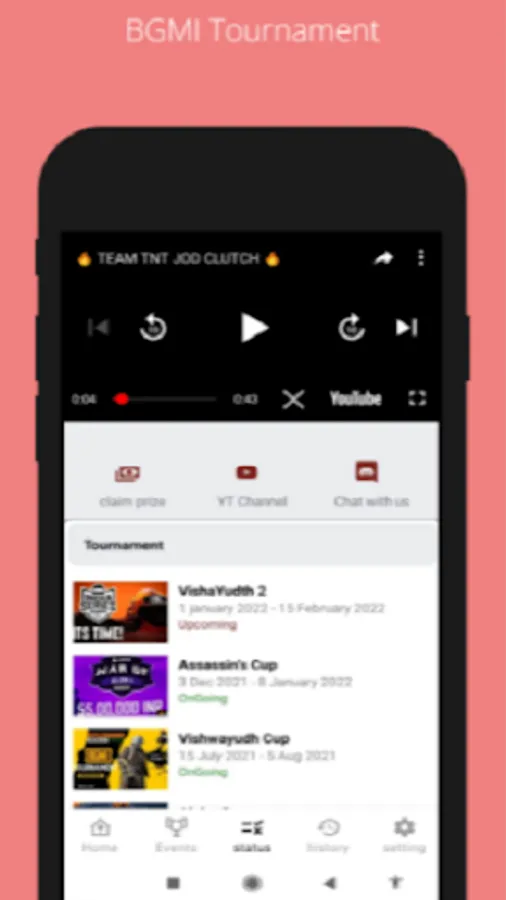 This App helps to book tournament online for e-sport gaming , Free Give-Away , Challenges for BGMI , Free Fire , Valorant