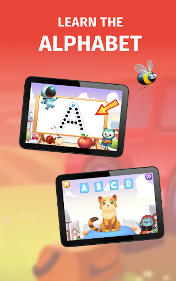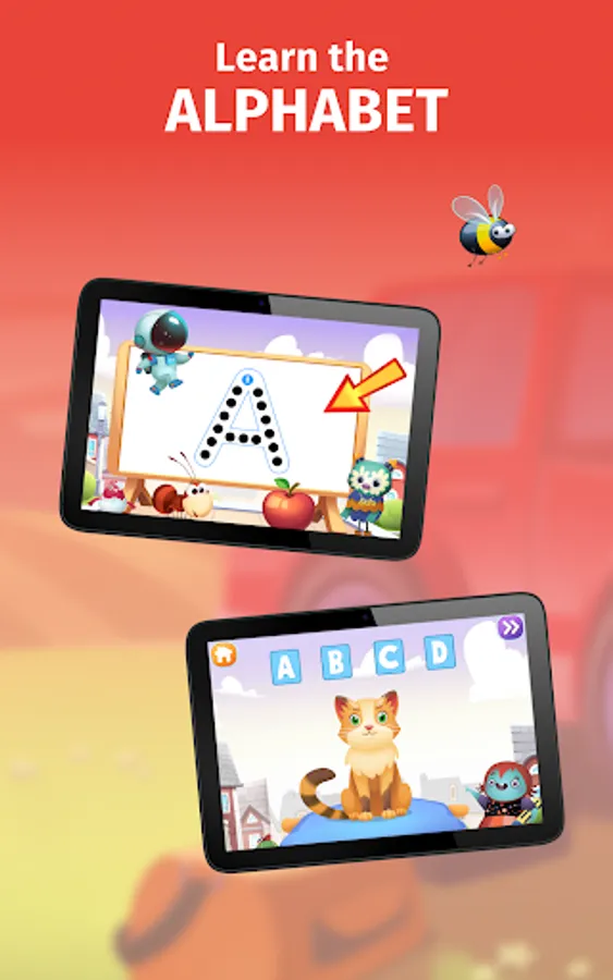 Interactive Alphabet Cartoon: this is a fun educational ABC game with animals and dinosaurs that teaches kids the alphabet and phonics in a fun, casual way. This game also develops spelling, reading, handwriting and letter tracing skills.