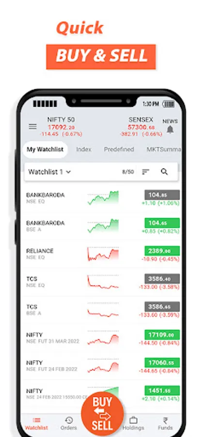 Why register, you ask? bob World etrade gives you access to a host of exclusive features, like custom Watchlists, Simple and Quick Login, Easy Place Order, Get real time update of your orders and much more. And guess what? That’s not all! You can place your orders on one tap via Quick Buy/Sell, get instant Trade Confirmation on the go.