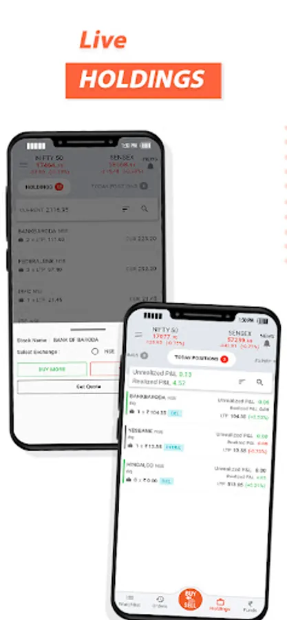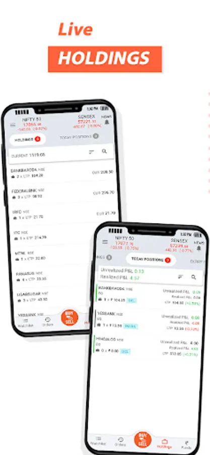 The holdings tab gives you in depth details on the list of all your stocks with Total current value of the holdings. It allows you to BUY MORE from holdings itself. Even if you want to SELL you can do it through holdings.