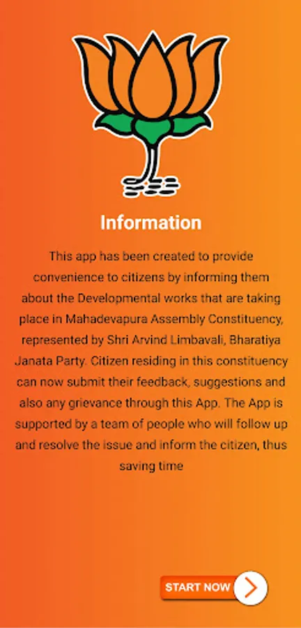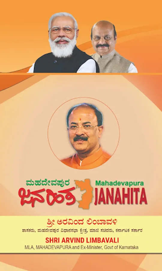 Welcome to “MAHADEVAPURA JANAHITA”. This app has been created to provide convenience to citizens by informing them about the Developmental works that are taking place in Mahadevapura Assembly Constituency, represented by Shri Arvind Limbavali. Citizen residing in this constituency can now submit their feedback, suggestions and also any grievance through this App. The App is supported by a team of people who will follow up and resolve the issue and inform the citizen, thus saving time.